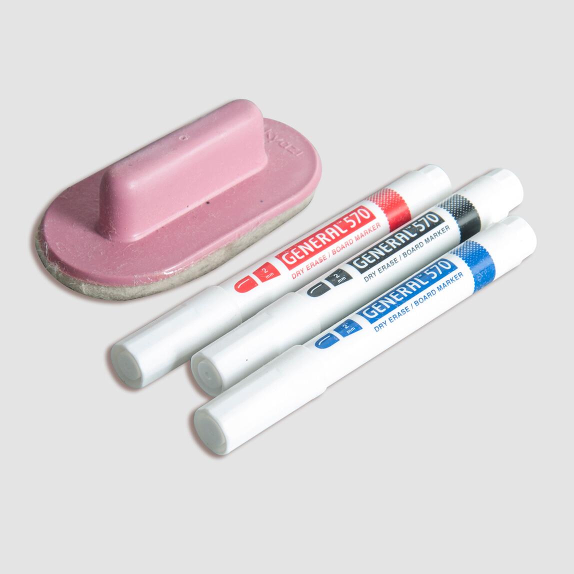 • Hem manyetik silgisi hem de 3 renkli board marker kalemleri olan bu set okullar ve ofisler için idealdir. Modern yazı tahtalarına yazmak veya silmek için kullanılır. Son derece kullanışlı ve pratiktir. Öğrenirken, öğretirken veya sunum yaparken elinizin altında bulunması gerekir. Paket içeriği: • 3 adet yazı tahtası kalemi • 1 adet küçük keçeli yazı tahtası silgisi • Kalem Renkleri:Kırmızı,Mavi,Siyah