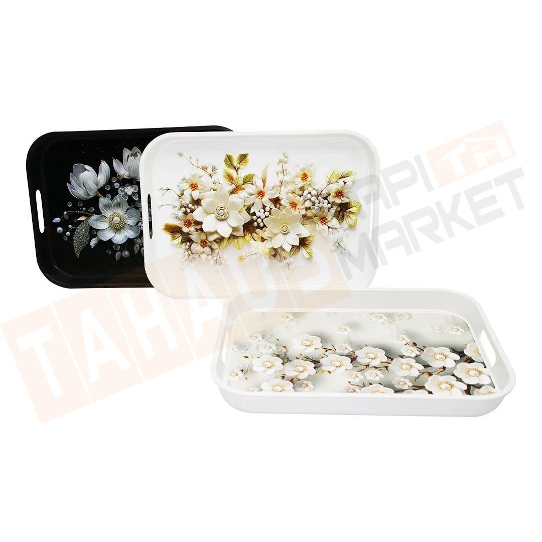- 1 adet Harmony Time AS-143-G Saray, Dikdörtgen Tepsi, Çiçek Desen Plastik - 35x25 cm