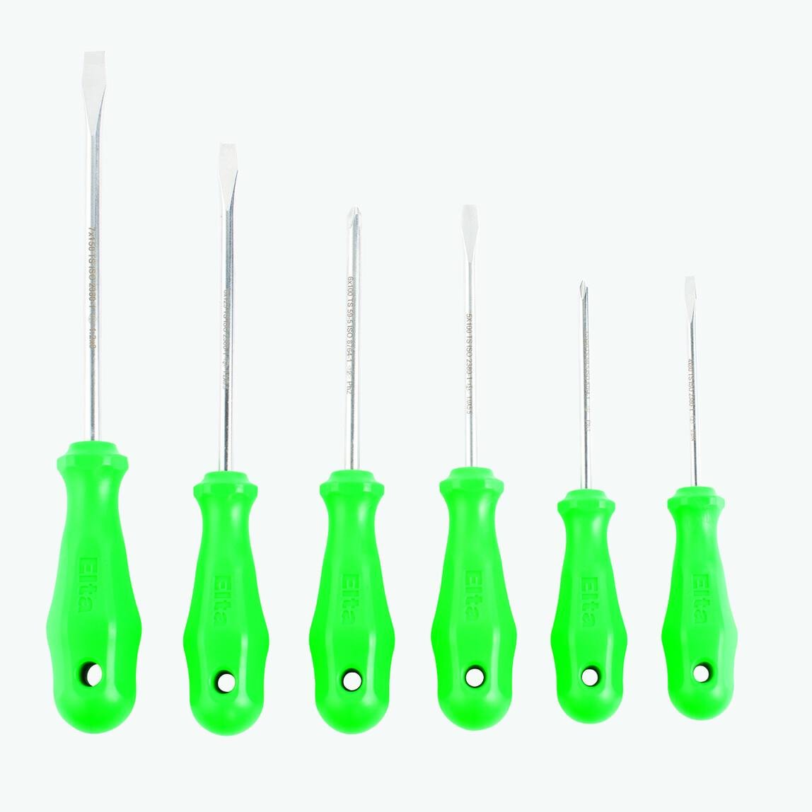 . 6 Parça . 4x80, 5x100, 6x125, 7x150 Düz Uçlu Tornavidalar . 4.5x80, 6x100 Yıldız Uçlu Tornavidalar . Yüzeyler Krom Kaplı . Polipropilen Sap İzole . TS İSO 2380-1, TS 59-5 İSO 8764 Standartlarına Uygun Üretilmiştir
