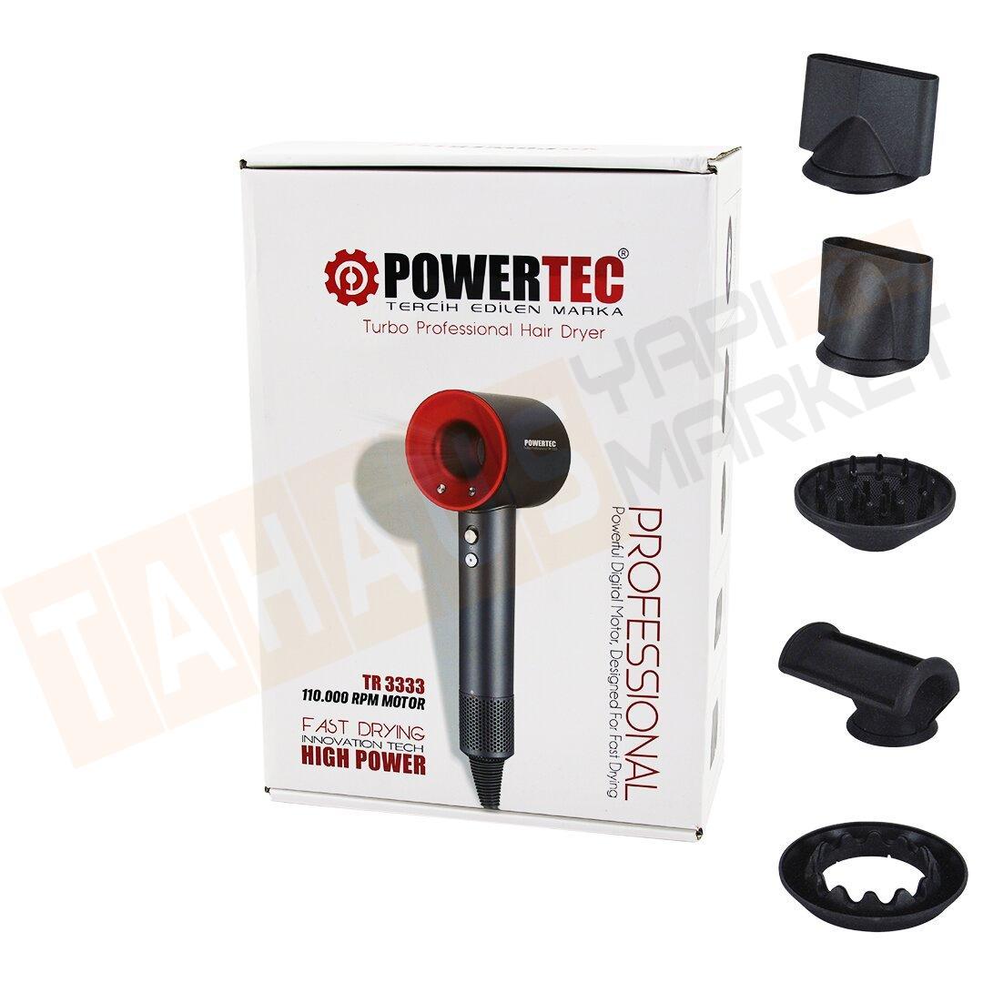 POWERTEC TR-3333 PLAZMA SAÇ KURUTMA & FÖN MAKİNESİ TURBO PROF. ( 5PCS UÇ & 3 KADEME SICAKLIK & HASSASİYET HIZLI KURUTMA (THS0605070008)