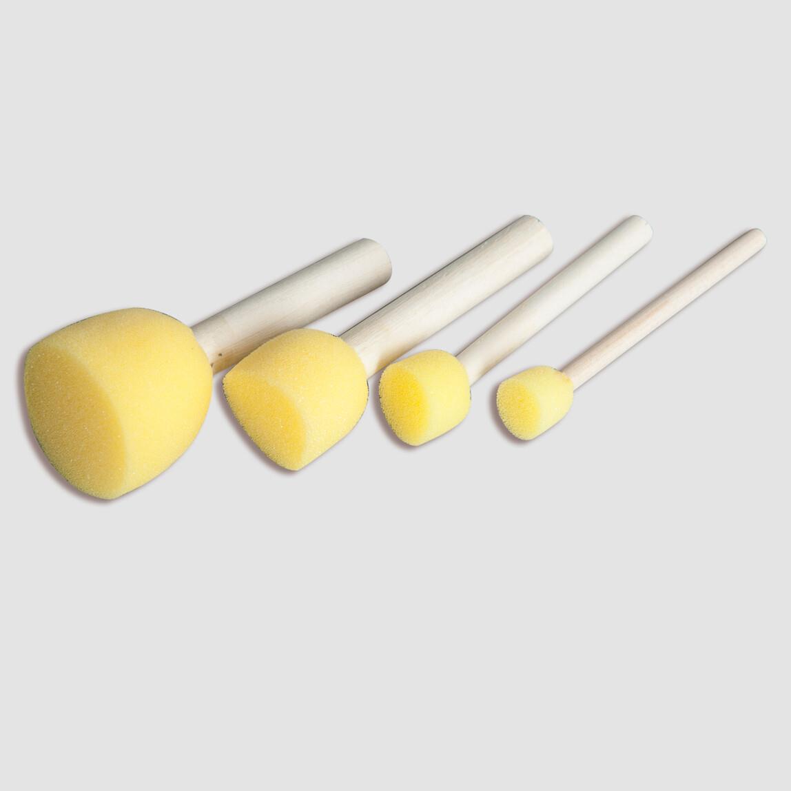 • Ahşap saplı, 4 farklı boyda sünger ponpon tampon fırçalar • Her türlü boyama işlerinizde kullanabilirsiniz, boyama işleminizi tamamladıktan sonra temizleyip tekrar tekrar kullanabilirsiniz. • Kumaşa stencil uygulamalarında çok başarılıdır. • Cam boyamada da kullanılır. İz bırakmaz. • Dikine olarak yüzeye darbeli boyama yapılır.