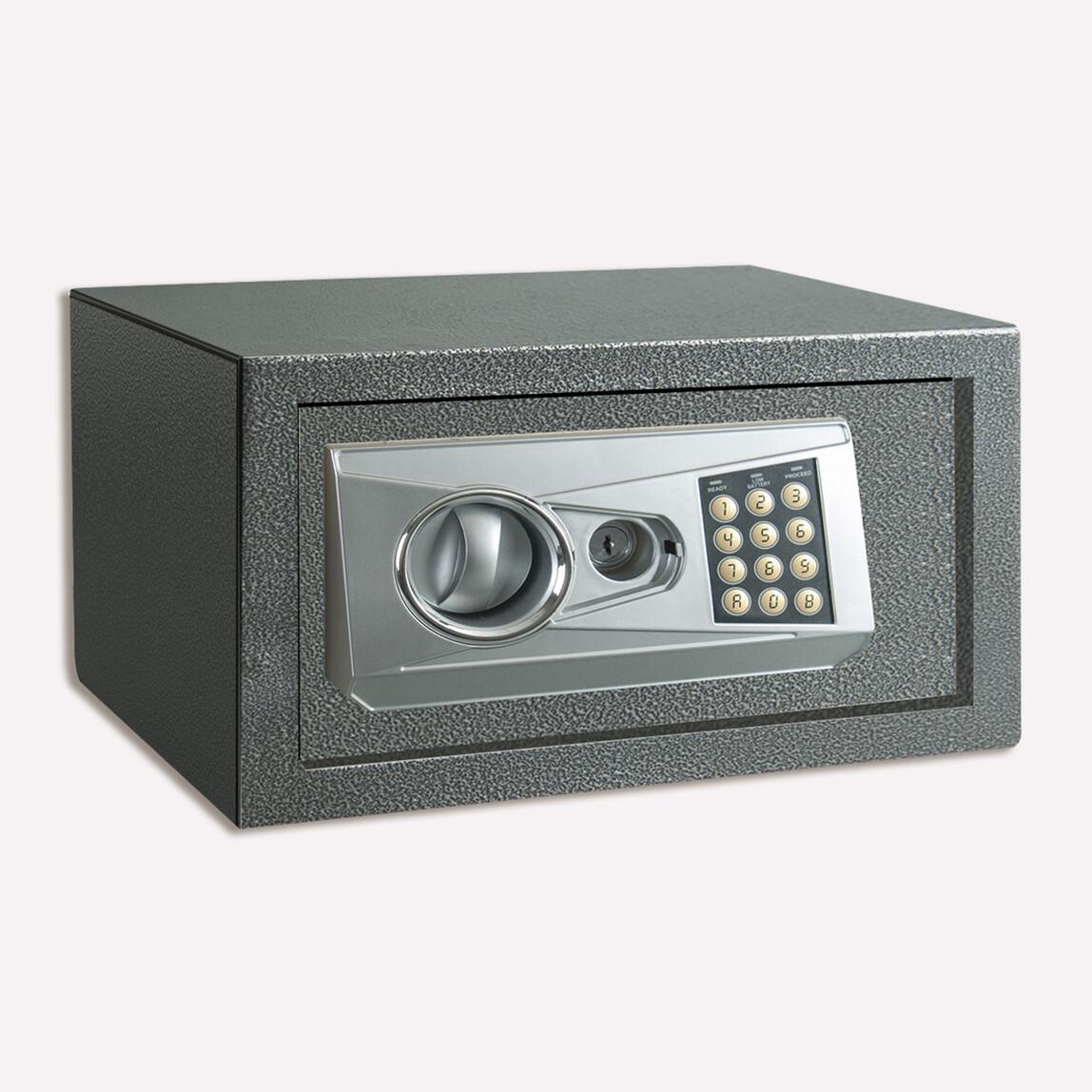 • Elektronik şifreli ve anahtarlı para kasası • 3-8 Hane şifre ile programlanabilir elektronik çiftli kilitleme sistemi • Acil durumlar için yedek anahtar • Duvara veya zemine monte edilebilir • Dayanıklı toz boya kaplı • Dış ölçü: 20x31x20 cm • İç ölçü: 19,8x30,8x14 cm • 6 kg • Gri