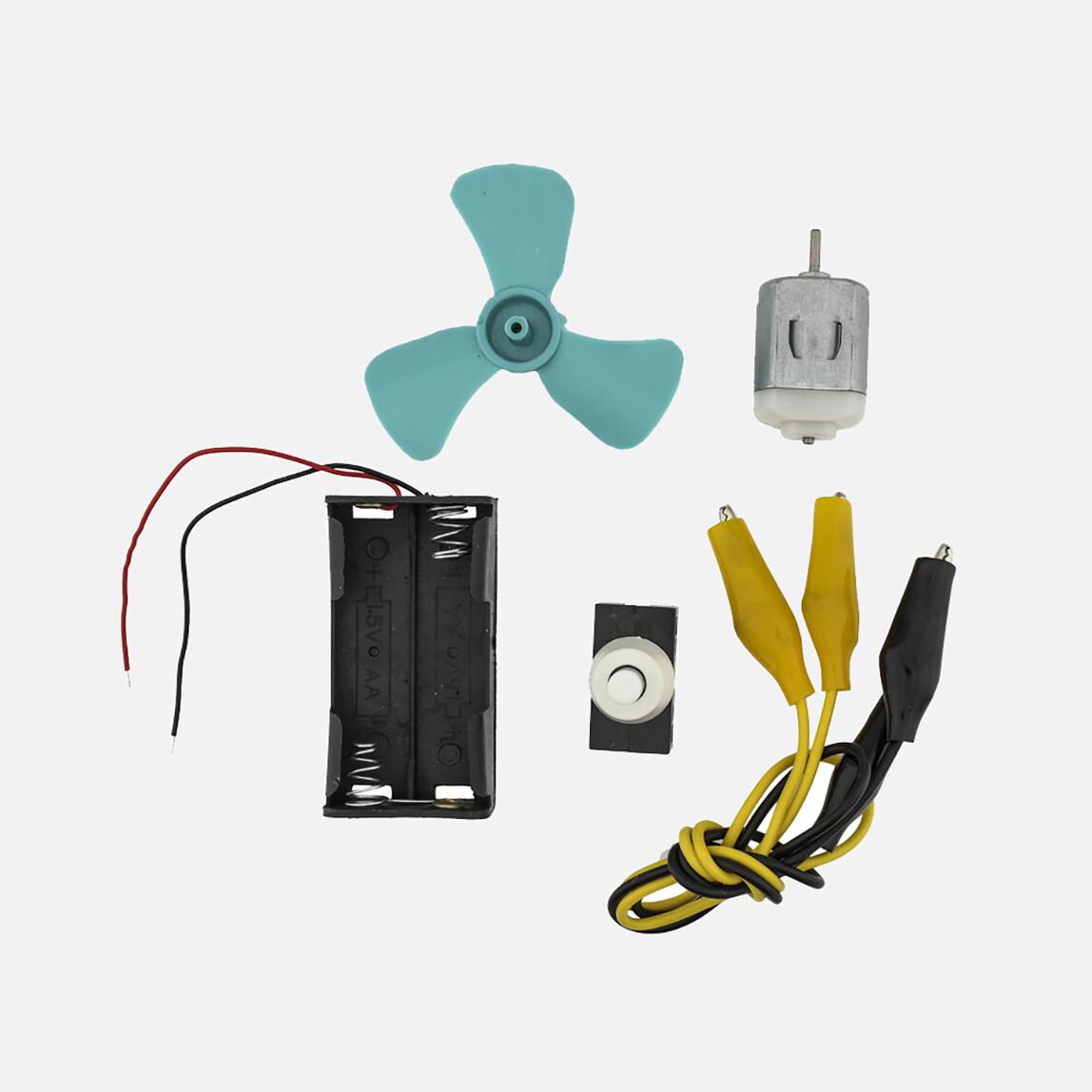 • İster kablo montajı yaparak, ister krokodil ile montaj yapmadan devre tamamlanabilir. • MONTAJ: Pil yuvasının ucuna bağladığınız kablonun, diğer ucuna motorun bir ucu bağlanır. Motorun diğer ucundaki kabloyu, anahtarın bir ucuna bağlayın. Son kabloyu da anahtarın ucundan pil kutusunun diğer ucuna bağlayın. Pil yuvasına (+/-) kutupları doğru gelecek şekilde pilleri yerleştirin. Anahtarı aç/kapa yaparak pervanenin çalışmasını gözleyebilirsiniz. Pilden çıkan kablo uçlarını yer değiştirirseniz, pervanenin diğer yöne döndüğünü gözlemleyebilirsiniz.
