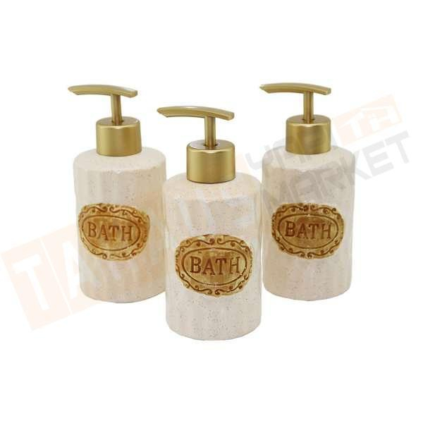 Yakut-11848 (Yuvarlak) (Krem-Kahve Şişe & Gold Sarı Pompa) (Seramik) Sıvı Sabunluk, şık ve fonksiyonel bir banyo veya mutfak aksesuarıdır. Bu tür sıvı sabunluklar, genellikle seramik malzeme ile üretilir ve estetik açıdan hoş bir görünüm sunar. İşlevselliği ve tasarımıyla, banyo dekorasyonuna şıklık katarken, sabun kullanımını da pratik hale getirir.